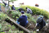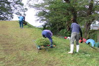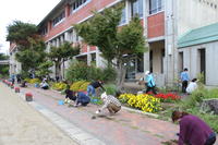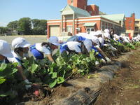 今回は、1・3・5学年のPTAの方々を中心にお集まりいただき、築山と花壇周辺の除草作業をおこないました。約40名の方々のお力であっという間にきれいになりました。