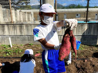 子どもたちは土の中からさつまいもを掘り出すたびに、「あった!」「やったあ!」「大きい!」「ここにもあるよ!」など、大歓声をあげていました。