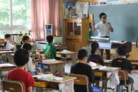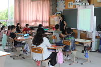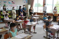 授業は、1年生国語「あいうえおであそぼう」、3年生音楽科「歌声ひびかせて」「こんにちはリコーダー」、5年生国語「古典の世界」。