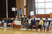今日の全校朝の会は、5年生の表現活動でした。