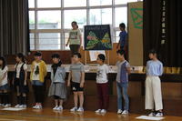 児童を代表して2年生が1学期に出来るようになったことを発表し、一昨日行われた「磐梯町小学校水泳交歓会」の賞状伝達も行われました。