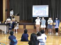 2020年7月15日 13時40分14日(火)の全校朝の会は、6年生の表現活動。