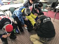 午前の部は、気温は低いものの、ほぼ曇り空、時折吹雪いたり晴れ間もさしたりの中、順調に活動できました。