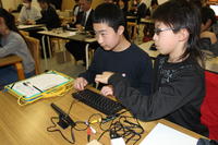 本日、町教育委員会主催、KDDIさんの共催によるプログラミング教室(一小・二小の5年生の合同授業)が、磐梯第一小学校で開催されました。