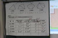 子どもたちは,算数の正多角形の角度などのきまりをもとに,プログラミングソフト「プログル」を操作しながら,正三角形や正方形,正六角形等がかけるプログラミングを学び,その学んだことを生かして思い思いの多角形をかくことにチャレンジしました。