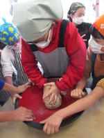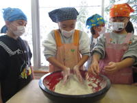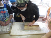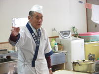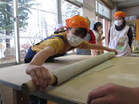 町内のそば打ち名人の方を講師として,「水まわし・こね・のし・切り」の行程を体験させていただきました。教えていただくこと一つ一つを興味深く見聞きしながら実際にそばを打ち,打ったおそばを食べる子どもたちの顔は,おいしさの笑顔でいっぱいでした。