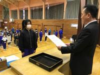 初めに,日曜日に開催された「県声楽アンサンブルコンテスト」で銅賞をいただいた合唱部が表彰され,代表の部長へ賞状が贈られました。5月,新メンバーでの結成からの頑張りを,心から讃えたいと思います。