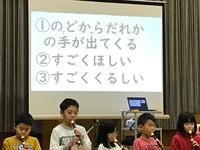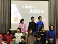続いて,3年生の表現活動が発表されました。3年生は,国語と音楽と体育の学習を効果的に組み合わせ,クイズやリコーダー演奏,跳び箱運動などを発表してくれました。