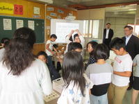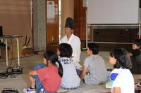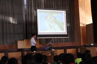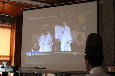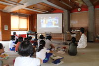 第1回目の今日は、地域の方を講師に、その歴史や舞い方などについてプレゼンテーションや映像をもとに教えていただきました。