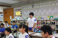 続いて、先日の学校緑化コンクール県知事賞受賞にちなんで、子どもたちの夏休み中の水やりや栽培学習への取組をほめたたえるとともに磐梯第一小学校の誇りである「緑色の基地」についての話をしました。