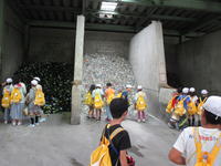 環境センターでは1回に1トンのごみをつかんで持ち上げるクレーンを間近で見学し、その迫力とごみの量に驚きながらも興味深く観察していました。その後、磐梯町の布藤にある最終処分場に行きました。磐梯町に処分場があるということを初めて知ったという児童も多く、処理場に対する理解を深めたり、真剣に説明に聞き入ったりしていました。