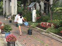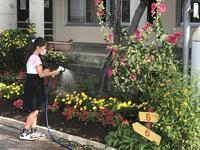 学校緑化そして花いっぱいに向け、夏休み中、4・5・6年生全員が水やり当番に交代で励んでいます。