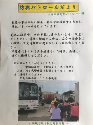 連日の猛暑の中、子どもたちや地域の安全を見守っていただき、ほんとうにありがとうございます。