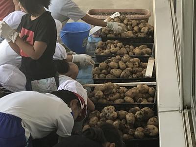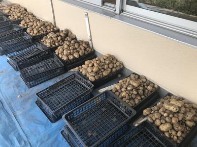 今年のじゃがいもは大豊作。子どもたちも興奮しながら重そうに掘ったじゃがいもを運びました。