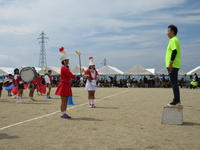 町民体育祭において、3~6年生約80名が鼓笛隊演奏を披露しました。