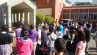 予定よりも早く最初の目的地である「仙台勾当台公園」に到着し,元気に班別学習に取り組んでいます。