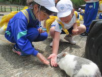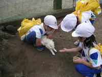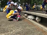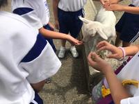 そして次の目的地の南ヶ丘牧場では,子どもたちが大きな期待を寄せていた動物たちとのふれあいを楽しみました。みんなは,猛烈な勢いでえさをもらいにやってくるヒツジやおとなのヤギたちにびっくりしながら大はしゃぎでえさをやったり,うさぎを抱っこしたりして,あっという間の1時間を過ごしました。