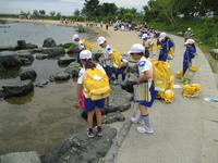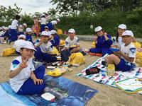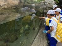 子どもたちは力強く泳ぐ魚たちの巨大水槽をながめたり,ヒトデをつかまえたり,蛇の目ビーチのまわりでおいしいお弁当を食べたりしました。