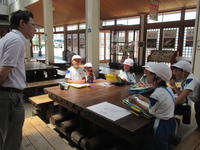 子どもたちはインタビューをしたり,聞いたことや気づいたことをメモに取ったりしながら,まちの人々と関わる体験をとおし,自分たちの生活とつながっていることを学びました。