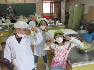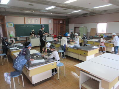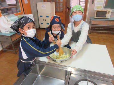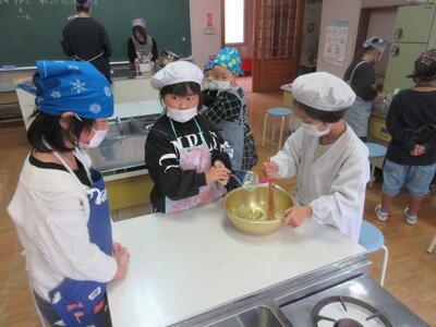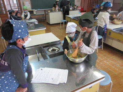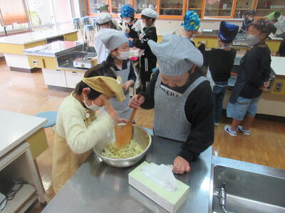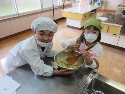 2年生が生活科で「サツマイモの茶巾」を作りました。