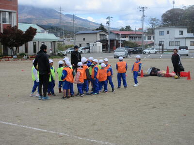 「JFAキッズプログラム」巡回指導で、県サッカー協会から2名のコーチの方が来てくださいました。