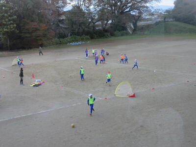 3・4年生の子ども達は、45分間、熱心にボールを追いかけていました。