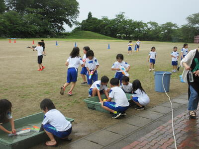 びしょびしょになるのも気にせず、曇り空を吹き飛ばすような元気さでした。