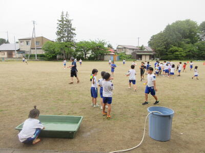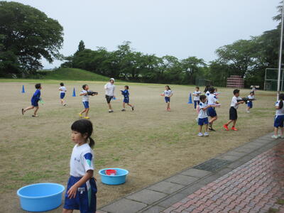 校庭にも大きな水たまりができたのですが、昼休みまでにはなんとか乾きました。