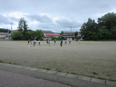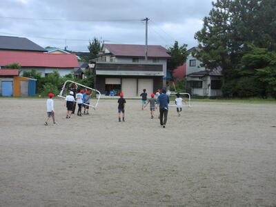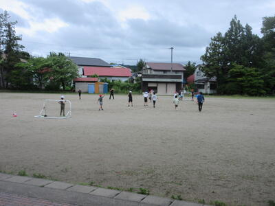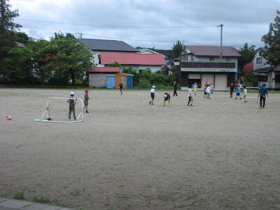 すると、待ちかねていたように子ども達が校庭へ飛び出し、サッカーを行っていました。