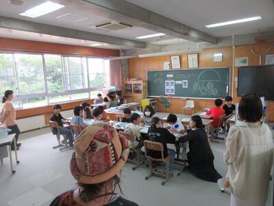校長が案内し、理科室や家庭科室などの施設を見たり、子ども達の学習の様子を参観したりしました。