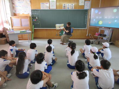 今日は3・4年の子ども達が読み聞かせを聞きました。