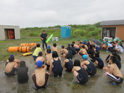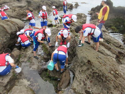 1日目は、「磯遊び」と「ナイトハント」を、2日目は、「いかだ乗り・ボディボード」を行いました。