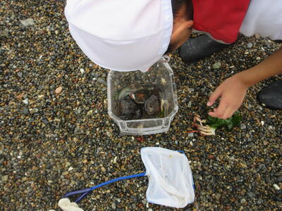 自然教室では、班の友達と助け合い、力を合わせて活動できました。