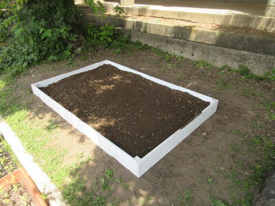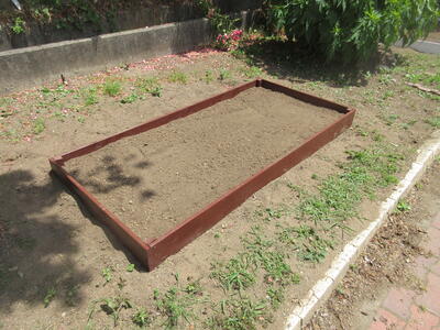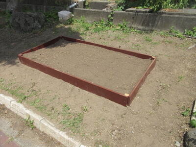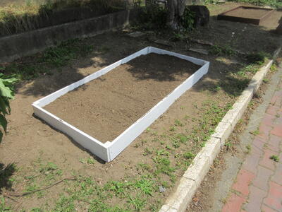 用務員さんが花壇の「木枠」を作ってくれたのです。