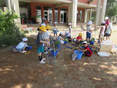 どんな花が咲くか、今から楽しみにする1年生でした。