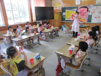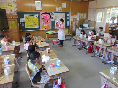 歯科衛生士さん2名、町保健婦さん2名が指導に来てくださいました。