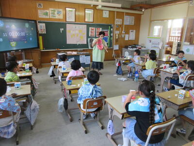 2校時に5・6年、3校時に3・4年、4校時に1・2年が行いました。