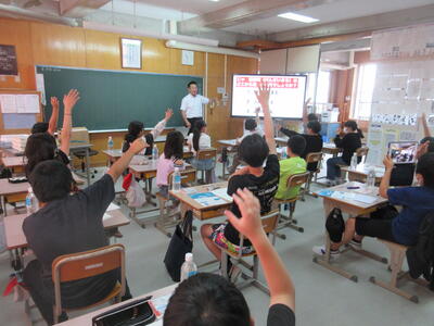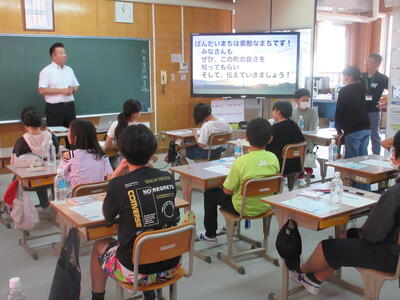 本日、6年総合「発信しよう、すばらしき磐梯町」の学習を行い、ゲストティーチャーとして町長さんにおいでいただきました。