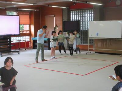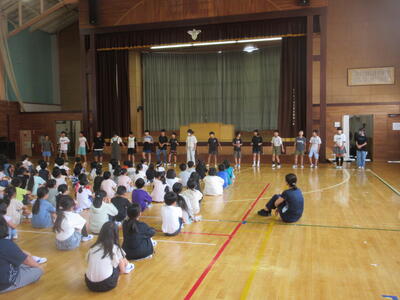 本日の全校朝の会は、5年生の表現活動を行いました。