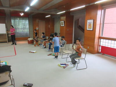 女子が「舞い」を、男子が「楽器」を体験しました。