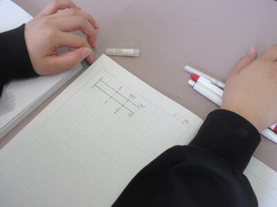 問題を解く手がかりとして、子ども達は自分で「数直線」をかき、考えていました。