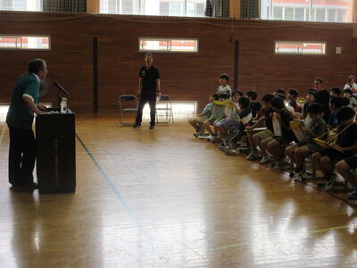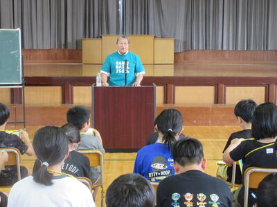 本日、「ドリーム&チャレンジ」特別授業を行い、4・5・6年生が講話を聴きました。