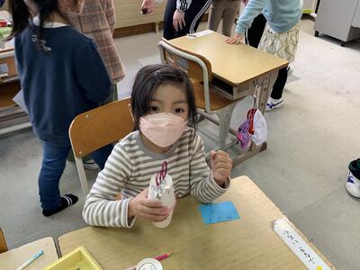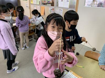 1年生が、どんぐりや木の実などを使って、秋のおもちゃづくりに挑戦しました