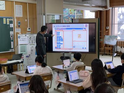 子どもたちが興味をもっているゲームを切り口に、キャラクターを実際に動かすプログラムを学びました
