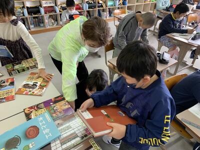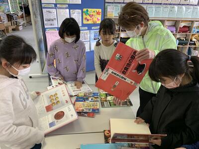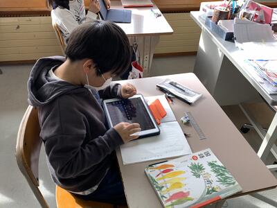 タブレットで調べる子ども、教室に用意された書籍で調べる子どもたち、それぞれのよさを生かして調べながら、充実した活動が行われていました