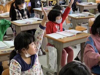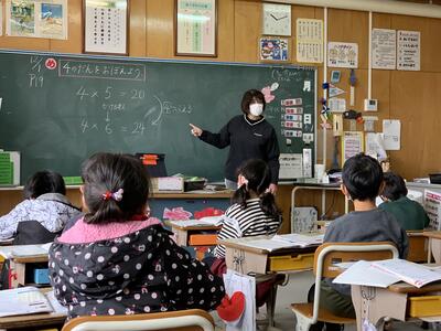 2年生の教室から元気な「九九」の計算の声が聞こえてきます