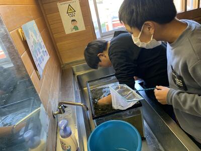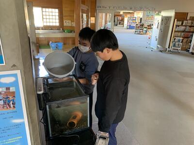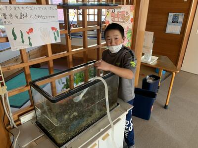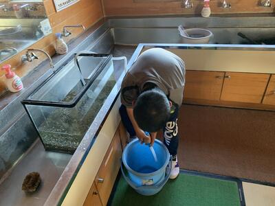 スポ少の練習までの時間を待つ子どもたちが、水槽のそうじを快く引き受けてくれました