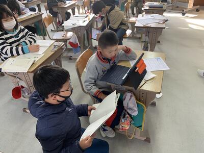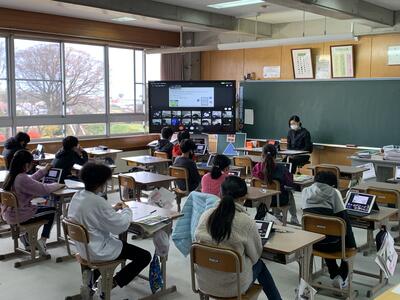 今日は、先日5,6年生が教育委員会の方にワークショップを行っていただき、出た意見を二小さんと、オンラインによる交流を行いました