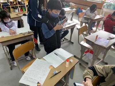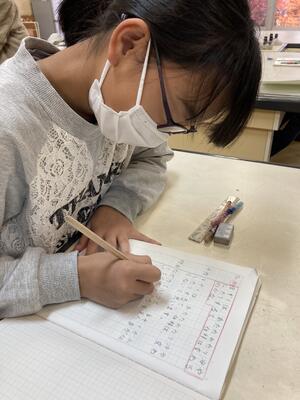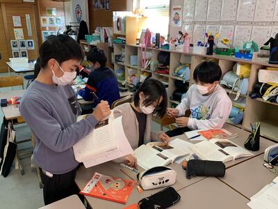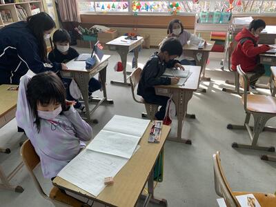 今は、説明文を読んだ後に、自分たちで要約文を書くまとめの段階です