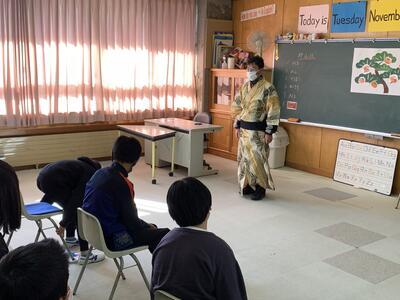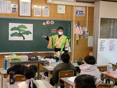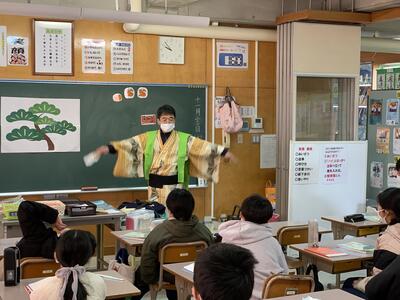 音読劇のはっぴょうでは、みんな狂言師になりきって演じていました